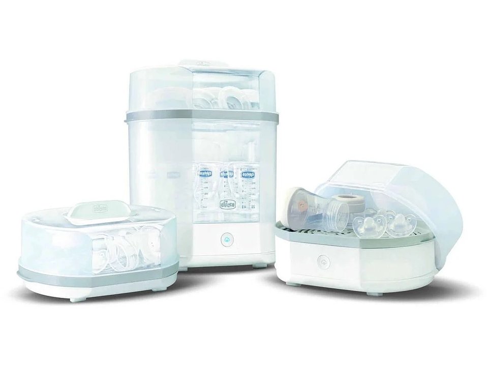 A segurança e a higiene são essenciais na alimentação dos bebés, e o esterilizador elétrico 3 em 1 da Chicco assegura uma limpeza rápida e eficaz de biberões e acessórios, com esterilização a vapor quente natural em apenas cinco minutos, eliminando 99,9% dos germes prejudiciais à saúde.